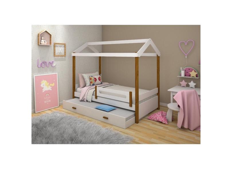 Cama Casa Eliz Branco/Mel Solteiro e Cama Auxiliar