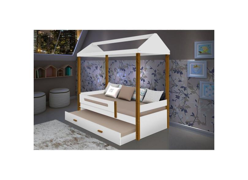 Cama Casa Sara Branco/Mel com Cama Auxiliar com 2 colchões