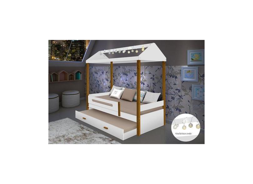 Cama Casa Sara Branco/Mel Com Cordão De Luzes Led E Cama Auxiliar - Di