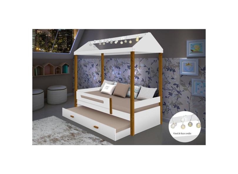 Cama Casa Sara Branco/Mel com Cordão de Luzes LED e Cama Auxiliar