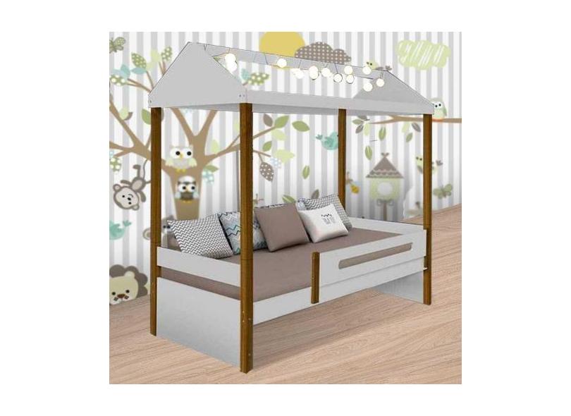 Cama Casa Solt. Sara Branco/Mel c/ LED e Colchão - Movelaria