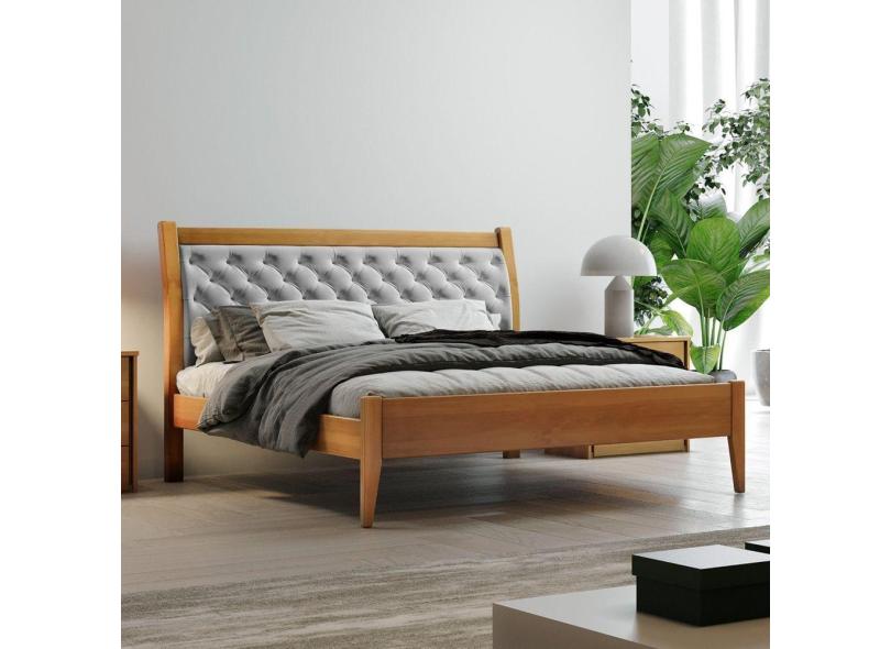 Cama Casal 140cm Vivare Josandro Amêndoa Mel/Veludo Cinza Claro