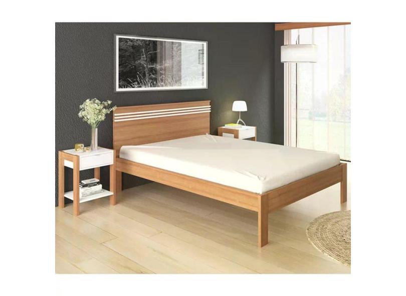 Cama Casal e 02 Mesas De Cabeceira Amendoa Branco