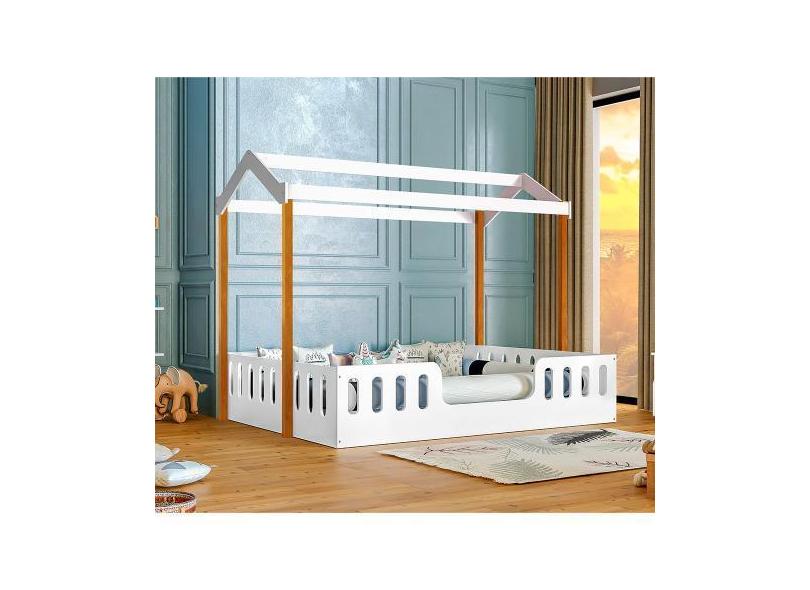 Cama Casal Infantil Casinha Montessoriana Ágatha - Branco/Mel - Baby M