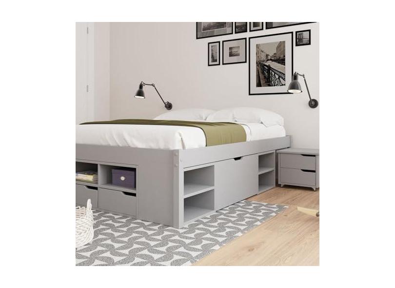O menor preço encontrado no Brasil para Cama Casal Multifuncional Madeira Maciça 6 Gavetas Charme Cool Grey atualmente é R$ 1.915,28.