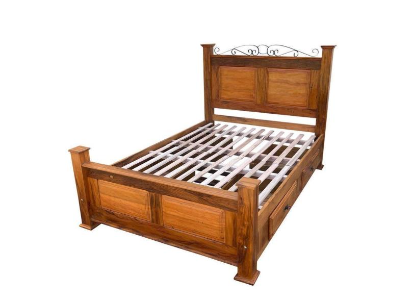 Cama Casal Padrão Em Madeira De 4 Gavetas Demolição Modelo Almofadas Sudeste Rústico