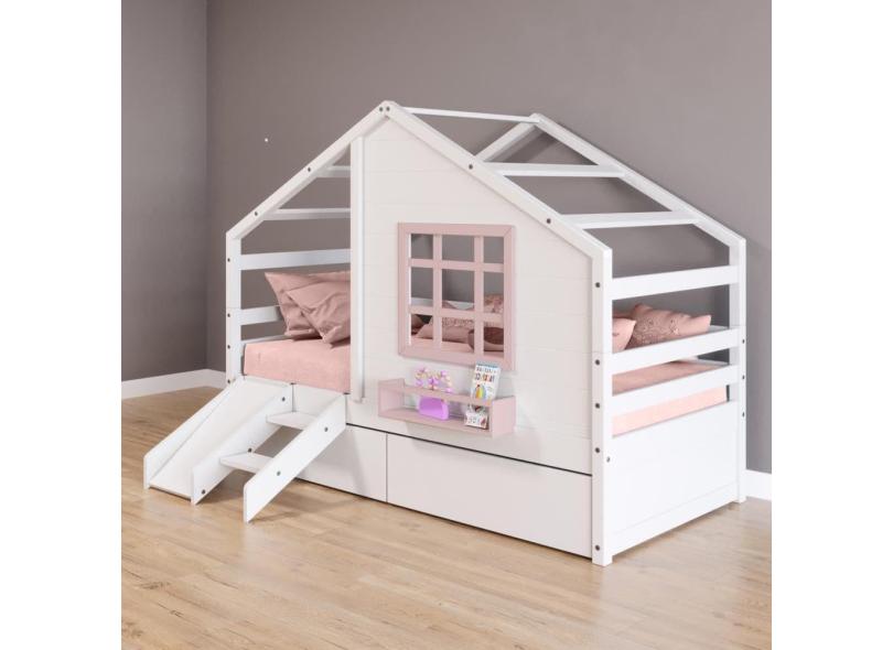 O menor preço encontrado no Brasil para Cama Casinha com Janela com 02 Gavetas e Escorregador Madeira Maciça Branco/ Rosa Housin atualmente é R$ 2.266,70.
