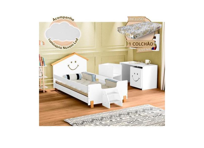 Cama com Colchão Juvenil Smile Infantil Alegra Branca e Amêndoa + Lumi