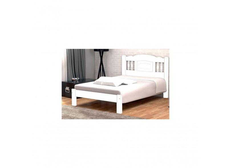 Cama de Casal Atenas de Madeira Maciça Angelim Pedra Tauari Branco