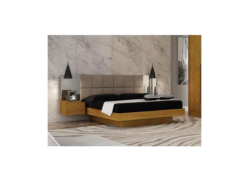 Cama De Casal Braga Com Criados E Painel Almofadado Freijó Marrom - Le
