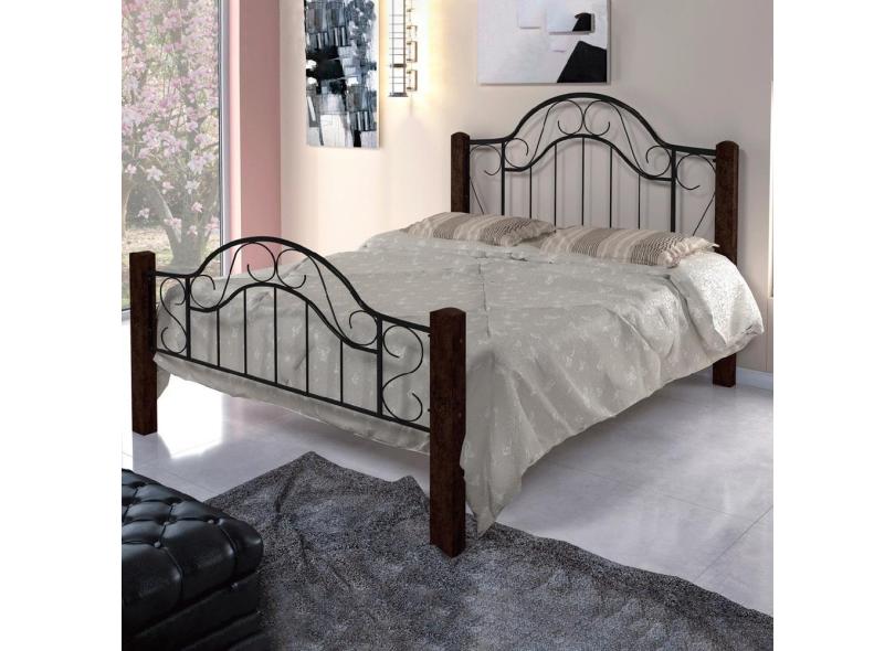 Cama De Casal Colonial Castanho Rústico/Preto Art Panta