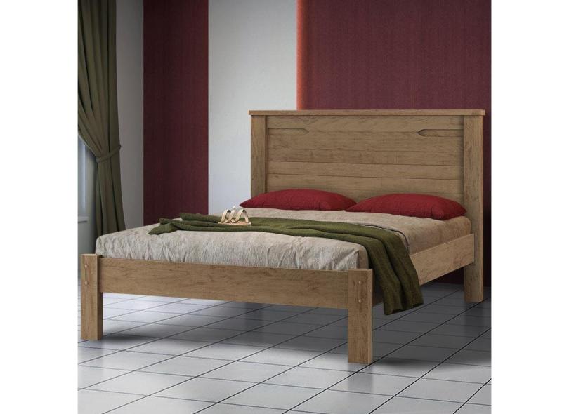 Cama De Casal Com Cabeceira 100% mdf Castanho Fege Shop Jm