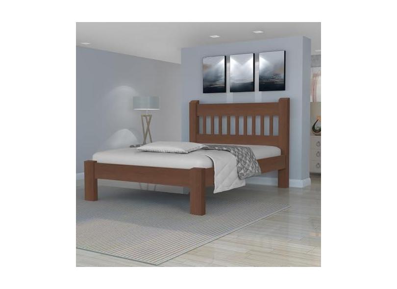 Cama de Casal Luxo de Madeira Maciça Angelim Pedra/Cedro/Tauari Cor Tabaco