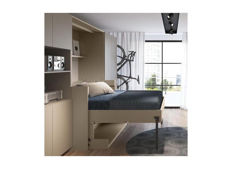 Cama De Casal Retrátil Vertical Com Mesa Escrivaninha Forman Svs Pecan