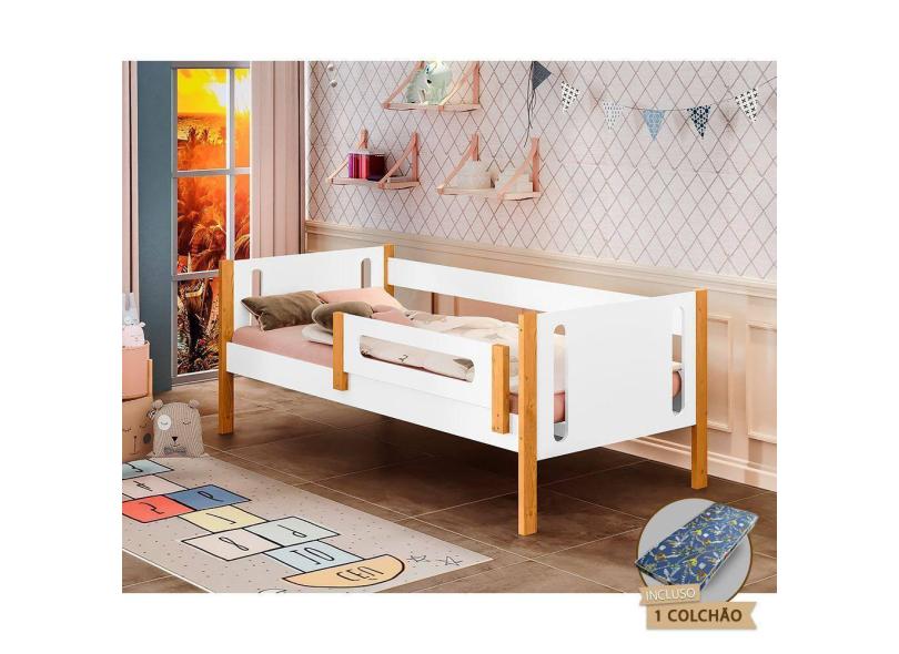 Cama de Criança Infantil Babá Montessoriana com Colchão Mirela com Grade de Proteção - Branco/amêndo
