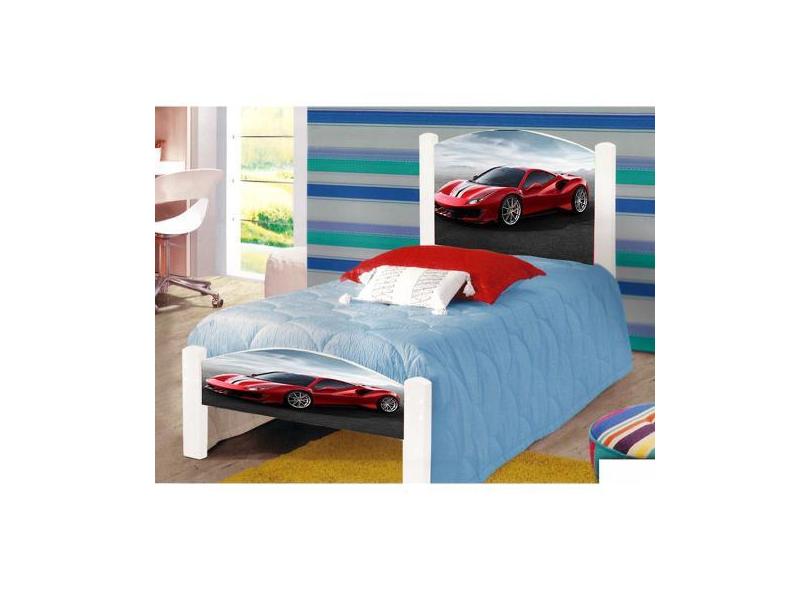 Cama De Criança Solteiro Infantil Adesivada Ferrari Com Grade De Prote