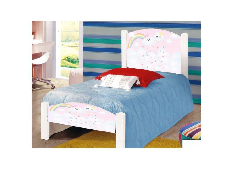 Cama de Criança Solteiro Infantil Adesivada Nuvenzinha Rosa com Grade de Proteção