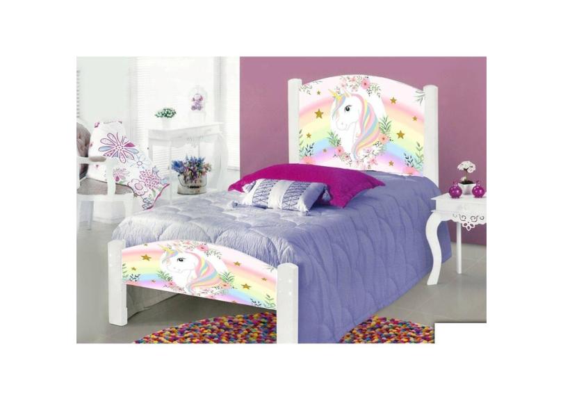 Cama de Criança Solteiro Infantil Adesivada o Unicónio com Grade de Proteção