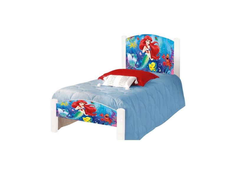 Cama de Criança Solteiro Infantil Adesivada Pequena Sereia com Grade de Proteção