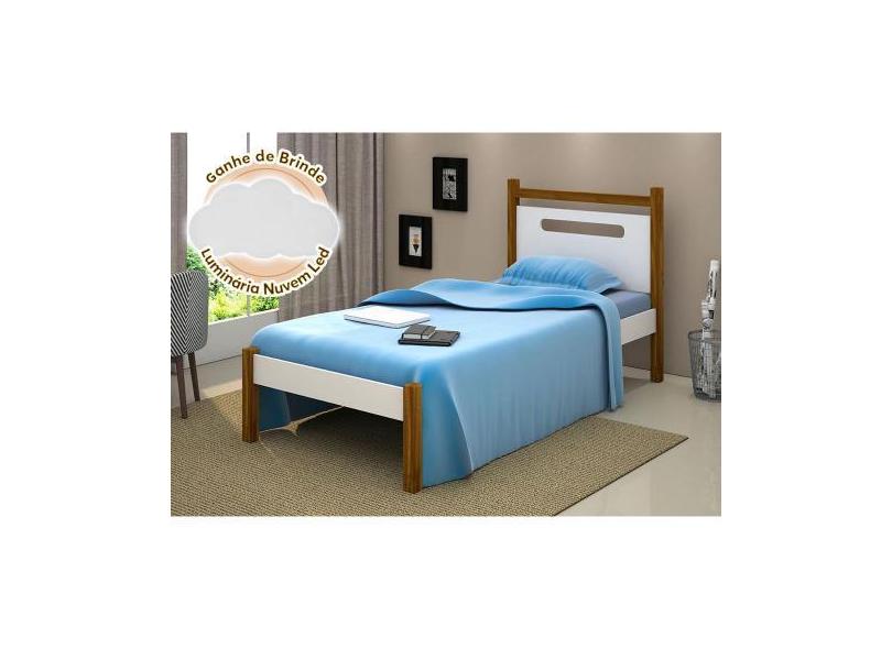 Cama de Solteiro Design Eloa Branco com Mel Incluso Luminária Led - MA
