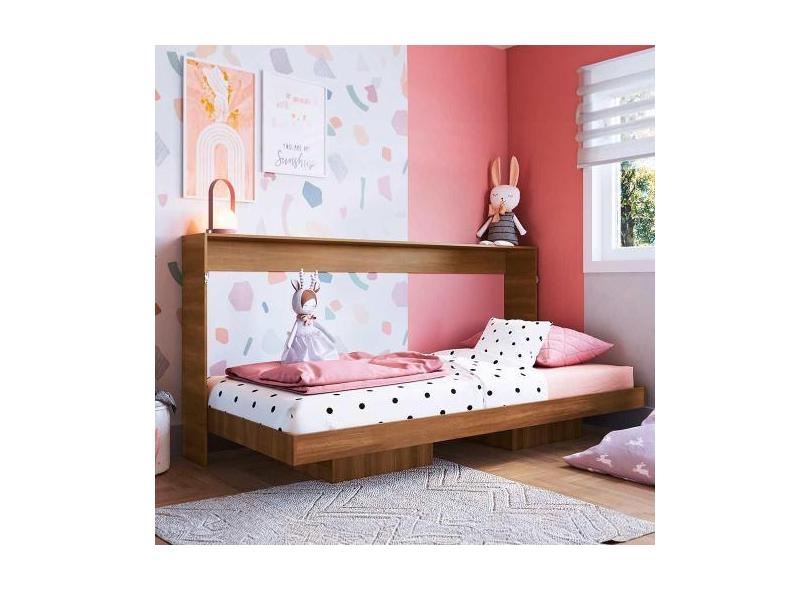 Cama De Solteiro Horizontal Articulável 2 Nichos Nogal Dallas Art In M