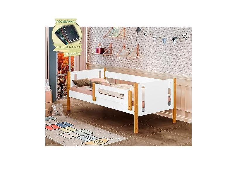 CAMA DE SOLTEIRO MIRELA BRANCO/MEL COM GRADE DE PROTEÇÃO INCLUSO LOUSA MÁGICA