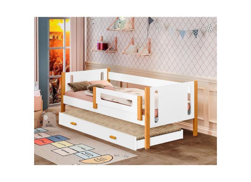O menor preço encontrado no Brasil para Cama De Solteiro Mirela Com Cama Auxiliar Branco/Mel Com Grade De Proteção - Cor: Branco atualmente é R$ 678,59.