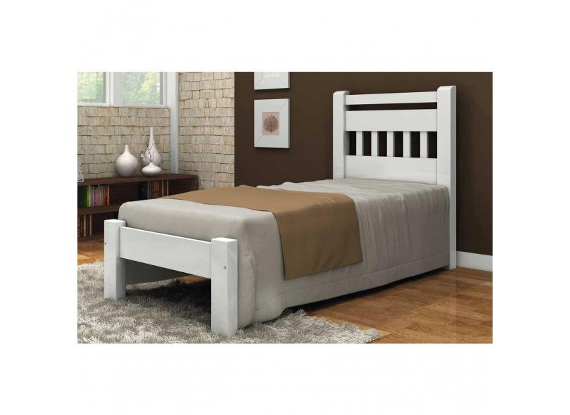 Cama de Solteiro Mônaco de Madeira Maciça Angelim Pedra Tauari Branco