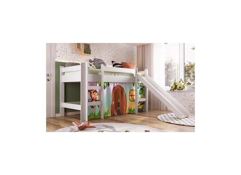 O menor preço encontrado no Brasil para Cama Elevada C/ Escorregador Branco C/ Cortina Estampa Zoo - Completa atualmente é R$ 632,39.