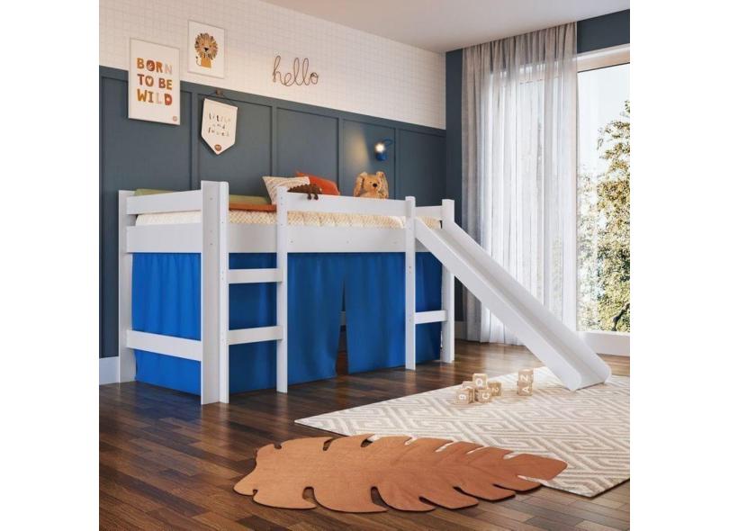 O menor preço encontrado no Brasil para Cama Elevada com Escorregador e Cortina 1 Colchão Branco/Azul atualmente é R$ 1.110,54.