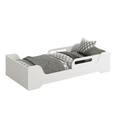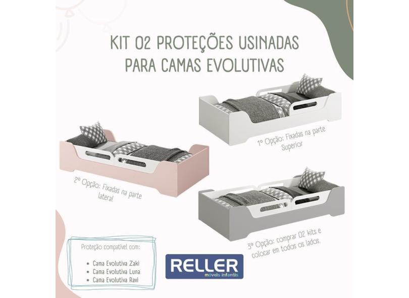 Cama Evolutiva 2 em 1 Zaki com Proteção Lateral Usinada - Reller Móveis Branco Fosco