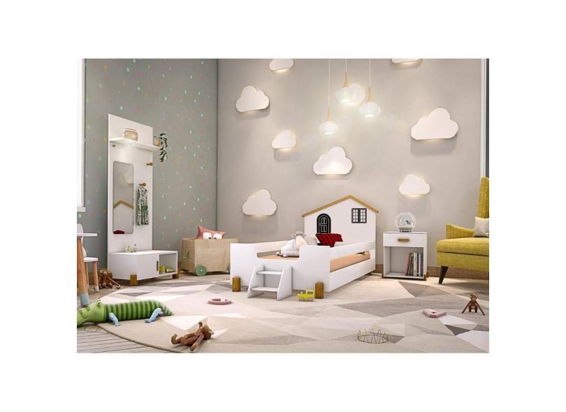 Cama Infantil Belíssima Branca e Preta com 2 Luminárias e Colchão Divaloto