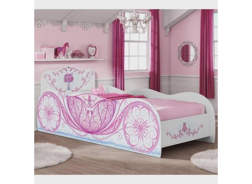Cama Infantil Carruagem Branco Rosa Móveis Estrela