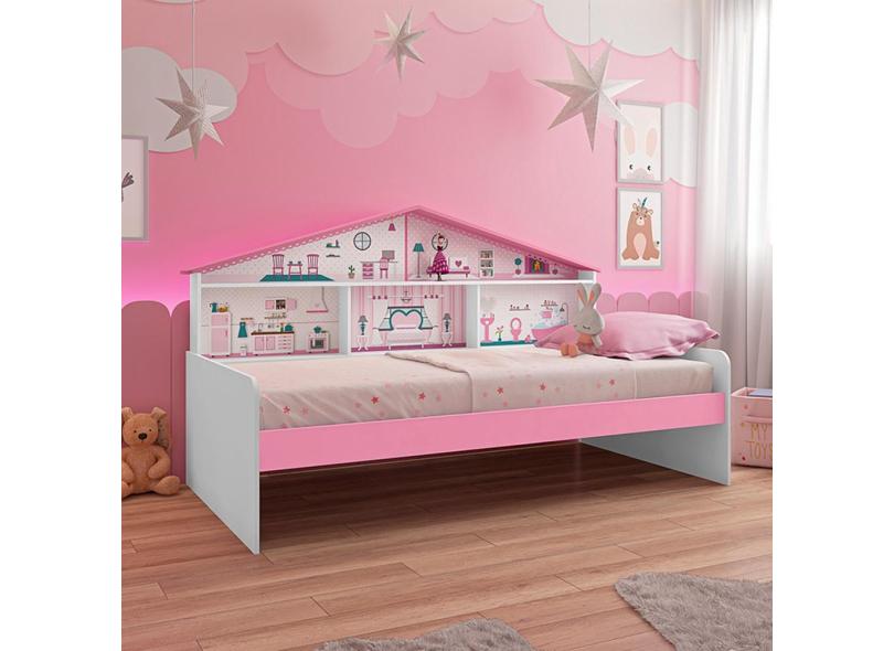 Cama Infantil Casa de Boneca Diversão Branco Rosa Pura Magia