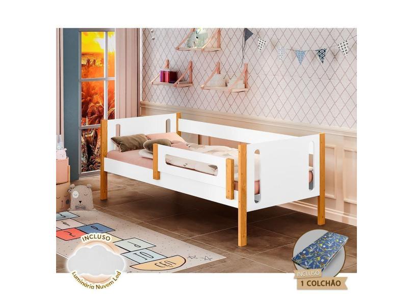 O menor preço encontrado no Brasil para Cama Infantil Com Colchão Mirela Com Grade De Proteção Branco/Amêndoa + Luminária Led - Cor: Branco atualmente é R$ 731,28.