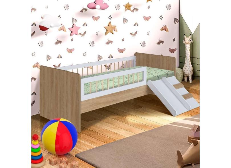 Cama Infantil Com Colchão Ortobom E Grade De Proteção 135cm x 193cm Aveiro Oak Branco Dmitri Shop Jm