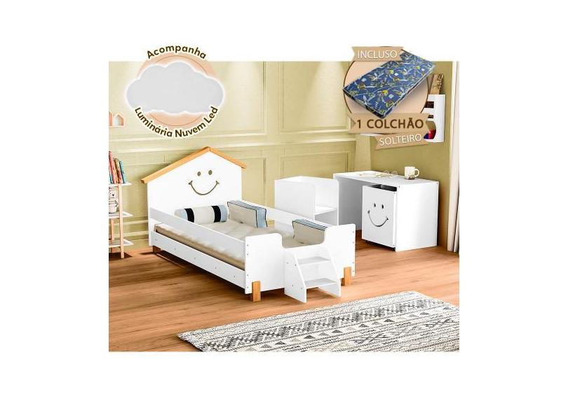 Cama Infantil com Colchão Solteiro Alegra Branca e Amêndoa + Luminária
