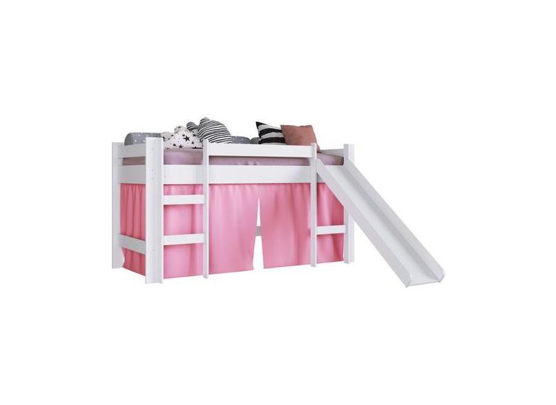 Cama Infantil com Escorregador e Cabaninha Bb1000 Branco/Rosa - Comple