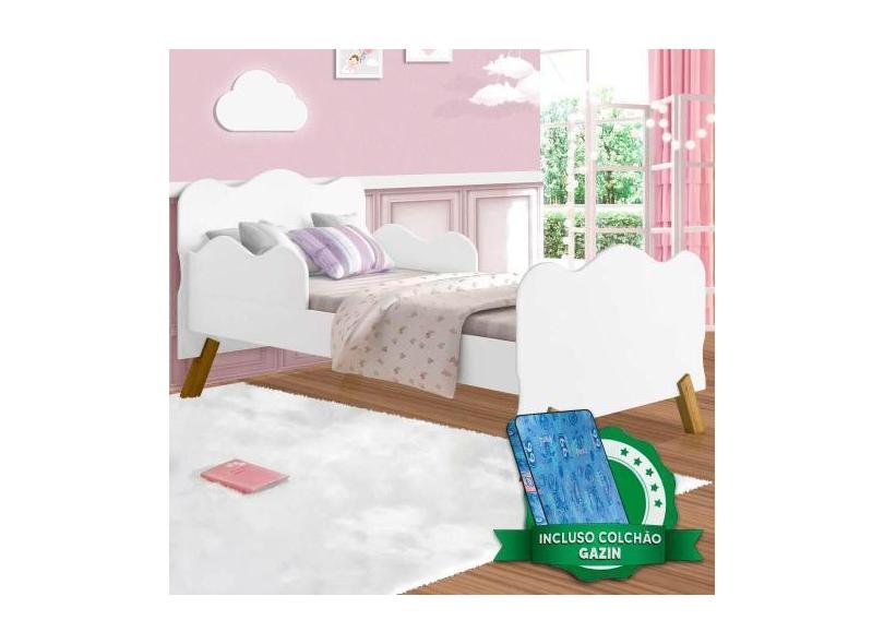 Cama Infantil Com Proteção Lateral Nuvem Branca Angel Cambel Com Colch
