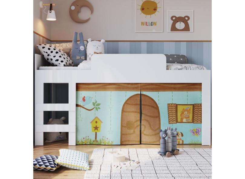 O menor preço encontrado no Brasil para Cama Infantil Com Protetor e Cortina Desenho Casinha Recreação Degrau Prateleira Quarto Branco atualmente é R$ 521,91.