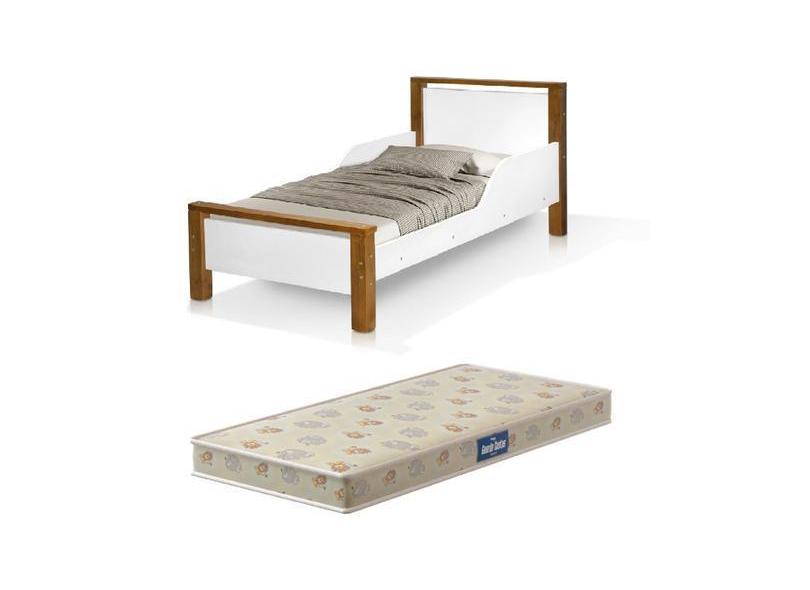 cama infantil meli com proteção lateral branco marrom com colchão - Fr