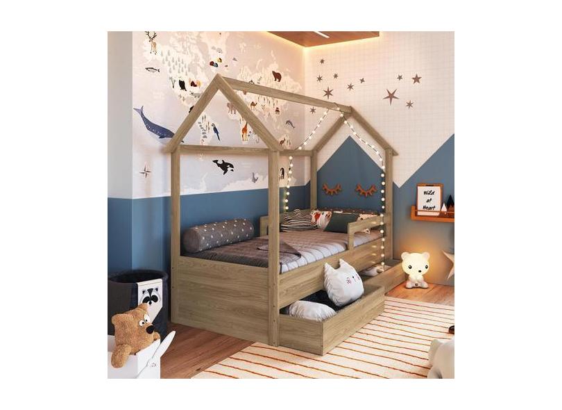 Cama Infantil Montessori Tipo Cabana Com 2 Gavetas Aveiro - Completa M