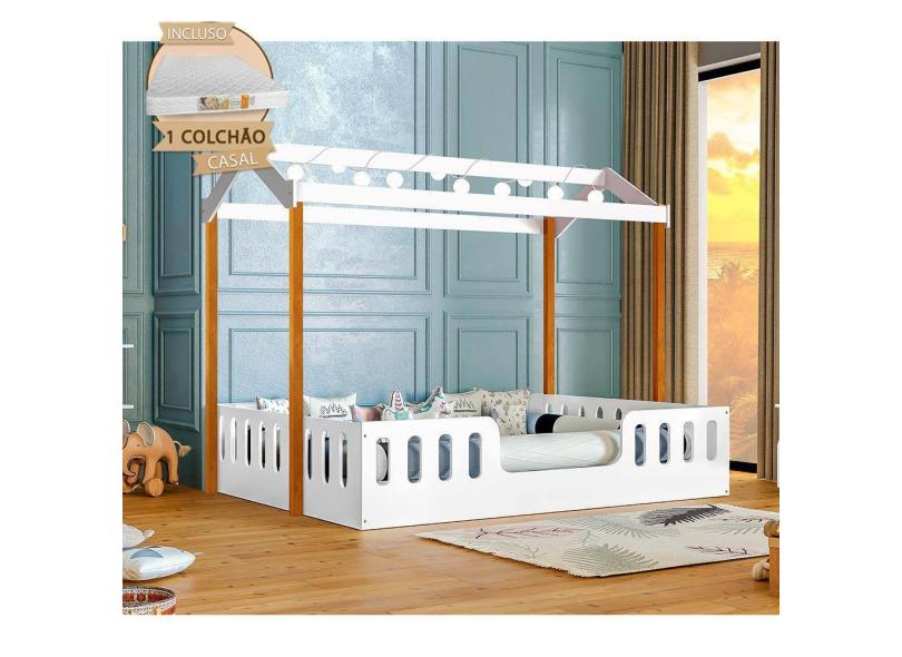 Cama Infantil Montessoriana Ágatha Casal com Led e Colchão Branco/amêndoa - Divaloto