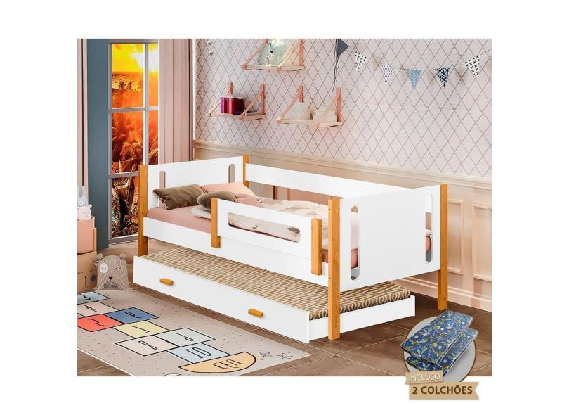 O menor preço encontrado no Brasil para Cama Infantil Solteiro Mirela Com Cama Auxiliar E Grade De Proteção Acompanha Colchões Branca/Castanho Claro atualmente é R$ 1.274,97.
