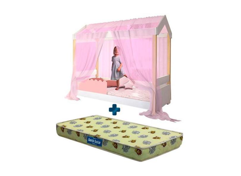 Cama Infantil Solteiro Rose Com Voal Rosa Jhulia Divaloto Com Colchão