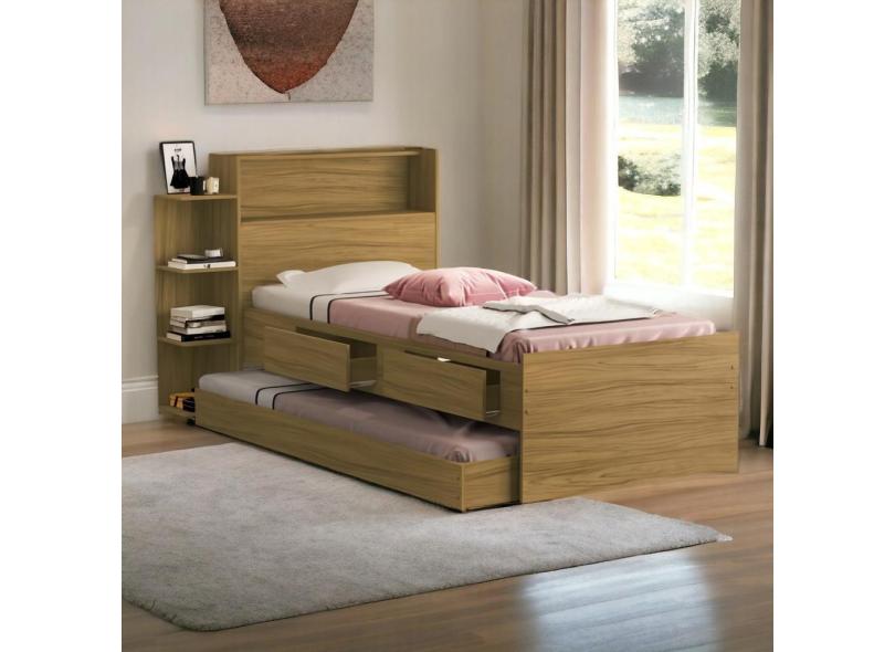 Cama Isa Solteiro Freijó com Auxiliar e 02 Colchões Cambel