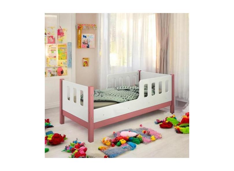Cama Juvenil com Proteção Encanto Branca e Rosa - Vitamov