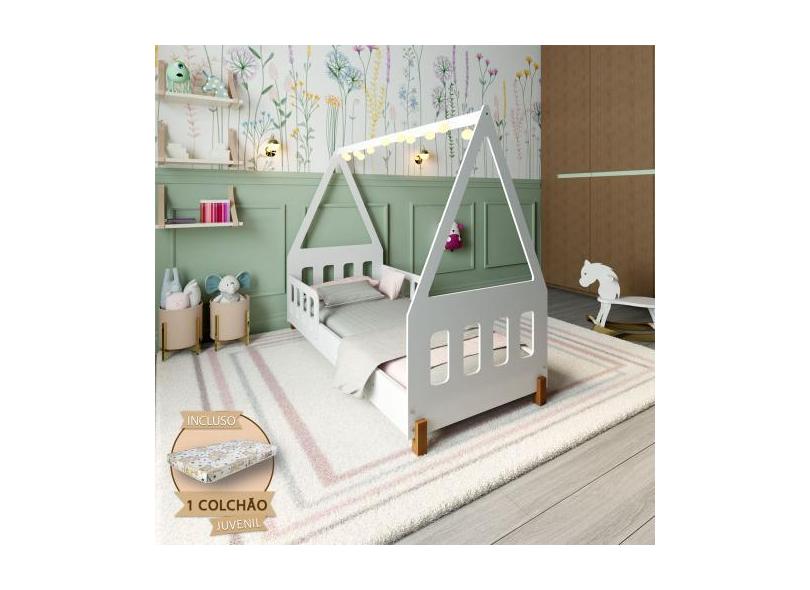 Cama Juvenil Susy com Led Grades de Proteção e Colchão Branco/mel - D