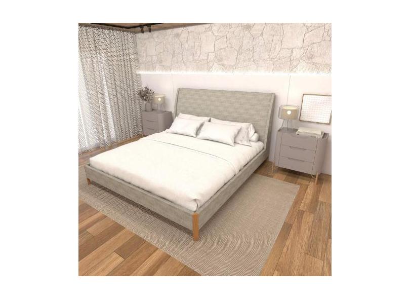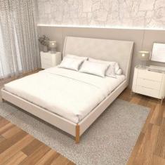 Cama King com Cabeceira Estofada e 2 Mesas com Gavetas MDF - Casa Lar