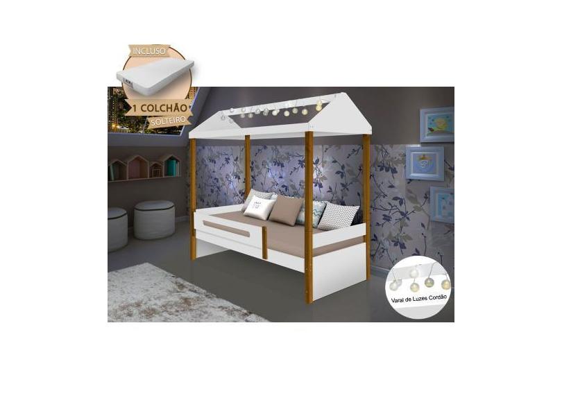 Cama Montessoriana Infantil Sara Solteiro Com Led E Colchão Divaloto -